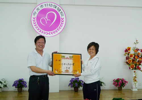 董永忠院长为获得“2010年职工演讲比赛二等奖”的办公室、婴护中心颁奖
