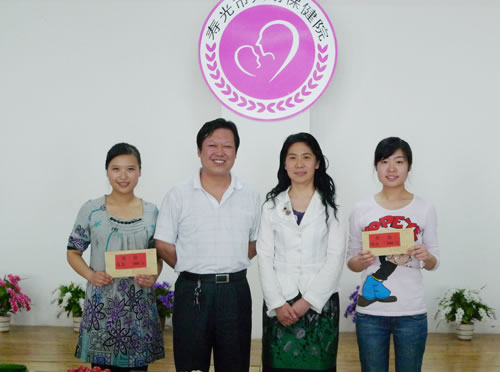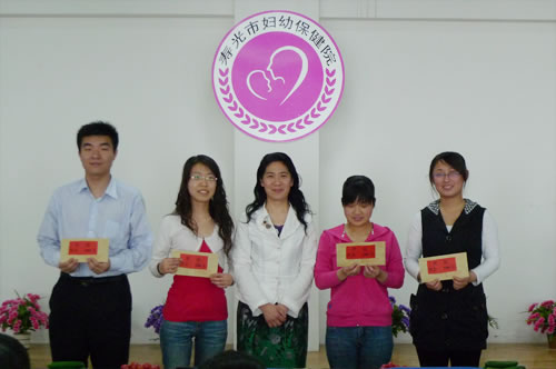 董永忠院长为获得“2010年职工演讲比赛三等奖”的儿童保健科、儿科颁奖